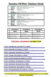 ![]() Leendő 1. osztályos tájékoztató | ![]() Nyílt órákra való jelentkezés nov. 20-tól |